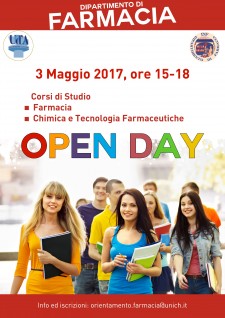 Il 3 maggio 2017, dalle 15 alle 18, il Dipartimento di Farmacia apre le porte agli studenti delle scuole per una visita alle strutture dedicate alla didattica con la possibilità di prendere parte ad attività di laboratorio e a scambi con il personale docente e gli studenti dei corsi di studio in Farmacia e Chimica e Tecnologia Farmaceutiche. Tra le attività è prevista anche una simulazione dimostrativa del test di ammissione.